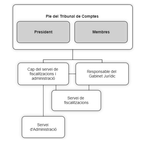 The assigned organisation, administrative structure, functions and powers are regulated by Articles 17 and subsequent articles of the Llei del Tribunal de Comptes, of 13 April 2000 (revised text published by legislative Decree on 27.09.2017).